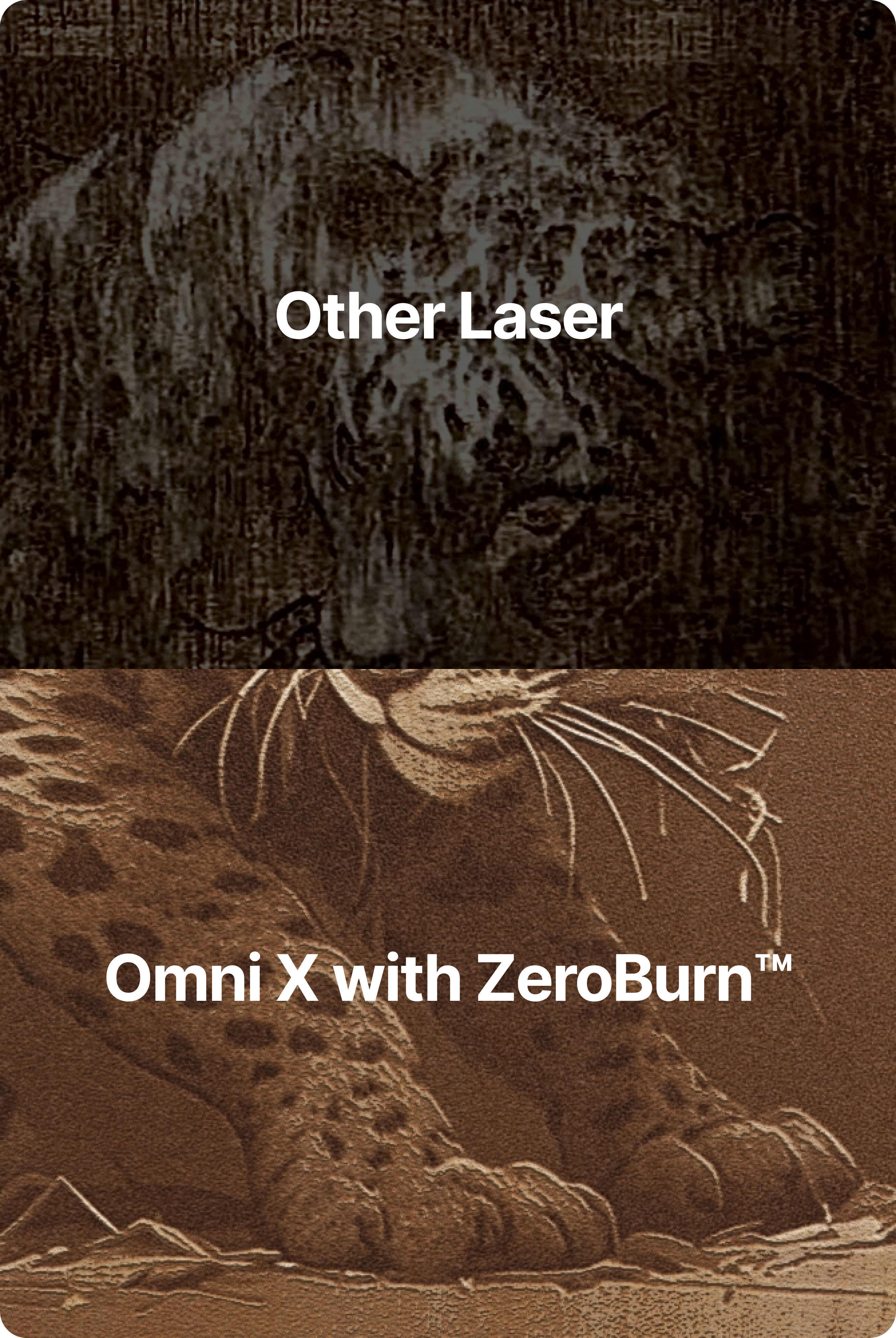 Powered by UV laser technology, Omni X achieves unprecedented engraving precision down to 0.0019mm* with an ultra-fine laser spot—redefining consumer desktop laser engraving.
